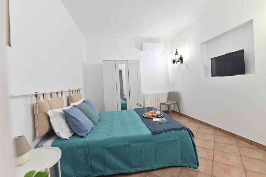 Una stanza è arredata con un letto matrimoniale queen size e un’altra stanza con due lettini singoli o matrimoniale, comodo e soffice che garantisce un riposo rilassante durante la notte.